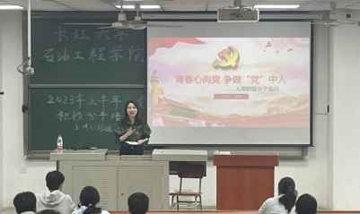 (通讯员 左清颖 张硕 /文 张硕/摄)2023年04月10日下午六时,太阳成集团tyc234cc主页于武教B-103开展了入党积极分子培训。公司党委副书记刘娥主讲“青春心向党,争做‘党’中人”党课,本科生及研究生支部共97名入党积极分子参加培训。