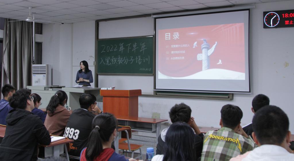(通讯员 刘昕竹/文 赵臻浩/摄)2022年10月18日晚上6时,太阳成集团tyc234cc主页在武教A310开展了入党积极分子培训,公司党委副书记刘娥讲授“青春心向党,争做‘党’中人”主题党课,85名入党积极分子参加。