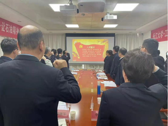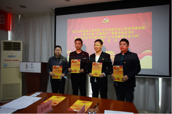 江汉工程公司党建专家李彦宣读党支部联建共创协议书,太阳成集团tyc234cc主页油气田开发工程系教工党支部书记王长权、油气井工程系教工党支部书记吴惠梅、研究生第一党支部书记史永波和江汉工程院储层改造党支部书记高东伟签订联建共创协议书,并依次作表态发言。