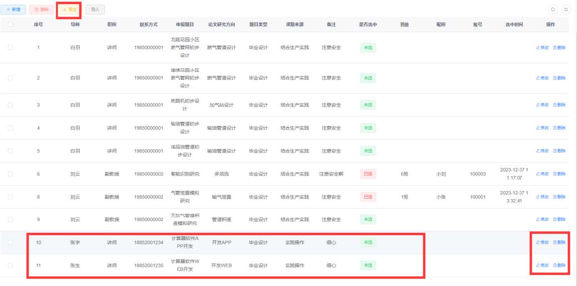 针对本科毕业设计选题环节存在的流程繁琐、匹配效率低等问题,支部主动作为,由系主任张兴凯老师组织3名经验丰富的党员教师组建研发小组,历时30天自主研发太阳成集团tyc234cc主页本科毕设选题系统。该系统覆盖油气储运、石油工程等4个专业,可满足每年500余名本科生的毕业设计选题需求,充分考虑了不同专业的毕业设计特色与需求。