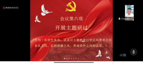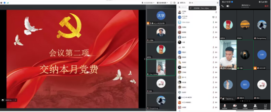 (通讯员 张新龙)2023年7月21日19时,公司研究生第二党支部于腾讯会议召开7月支部主题党日活动。本次会议由支部书记陈金建同志主持,支部研究生党员同志参会。