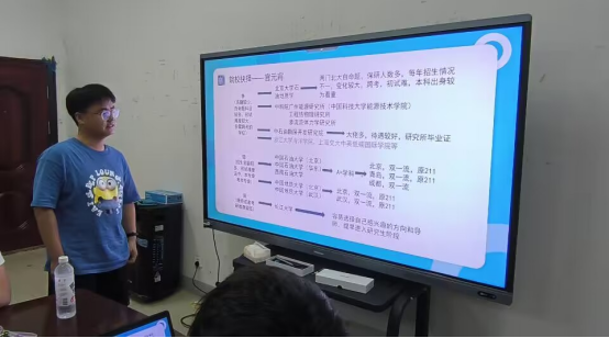 在院校抉择方面,李茂竹学长给大家传授了几点建议:大家可以从研招网查看考研院校相关信息,从公司官网了解心仪公司的夏令营举办情况并积极参加。获取心仪公司学长学姐的微信,与学长学姐进行交流,对老师有初步的了解,去公司官方网站搜一下老师,再搜一下老师近几年的论文,提前对老师的研究方向有一定的了解。官元宵学长给同学们列举了三类不同难度梯度的考研院校,分别归类为“冲、稳、保”建议同学们根据自身实际情况选择适合自己的目标院校。