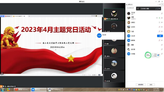 4月28日上午,海工系与实验中心教工联合党支部线上开展了4月支部主题党日活动,全体党员参加。本次活动以“为深入学习贯彻习近平总书记重要讲话精神,深刻理解和全面把握开展学习贯彻习近平新时代中国特色社会主义思想主题教育的重要意义和总体部署,切实把思想和行动统一到党中央部署要求上来”为主题,支部党员通过微党课、理论学习和主题研讨等方式认真学习。