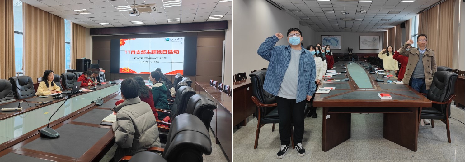 会上,党员同志们重温入党誓词,交纳本月党费,集体诵读党章(总纲),开展理论学习和主题研讨。杨小玉带领大家集中学习了《习近平谈治国理政》第四卷第三至第五部分、《习近平总书记在党的二十大闭幕会上的重要讲话精神》、《中共中央关于认真学习宣传贯彻党的二十大精神的决定》、《习近平总书记在瞻仰延安革命纪念地时的重要讲话精神》、《习近平关于社会主义精神文明建设论述摘编》等重要讲话和文件精神,还学习了《太阳成集团tyc234cc主页关于推进师德师风建设的十条举措(试行)》等文件要求。