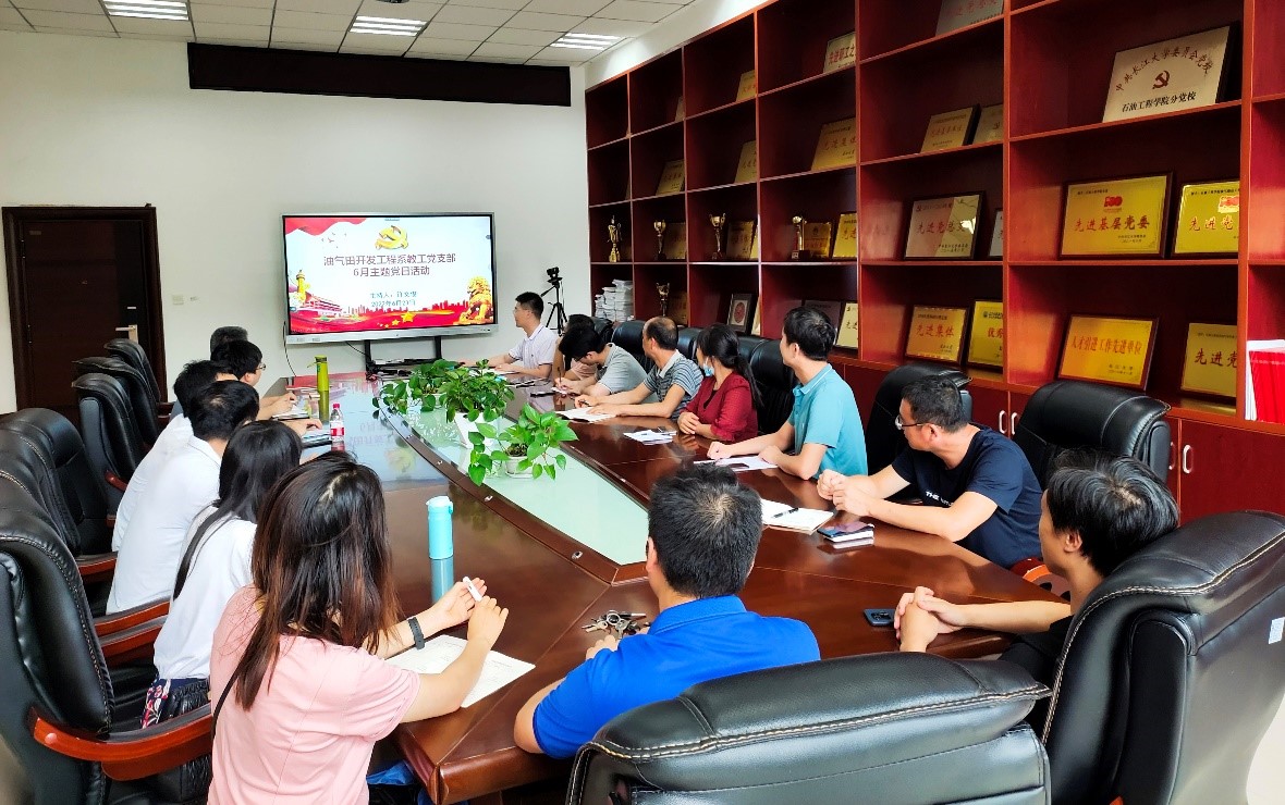 (通讯员 许文俊)为巩固拓展党史学习教育成果,以实际行动迎接党的二十大胜利召开,6月23日14时,油气田开发工程系教工党支部在石油科技大楼C111会议室召开了6月主题党日活动,活动由支部书记许文俊同志主持,全体党员同志参加。