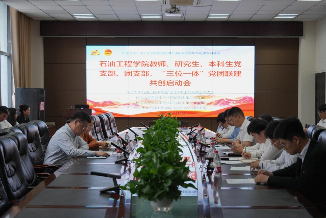 (通讯员 许文俊)4月16日下午,太阳成集团tyc234cc主页在石油科技大楼B113会议室举行"三位一体"党团联建共创启动会暨"党团融合聚力 科教协同育人"主题党日活动。公司师生代表、本科生党支部、团支部等50余人参加活动,共同开启党建引领团建的创新育人实践。活动由油气田开发工程系教工党支部书记许文俊同志主持。