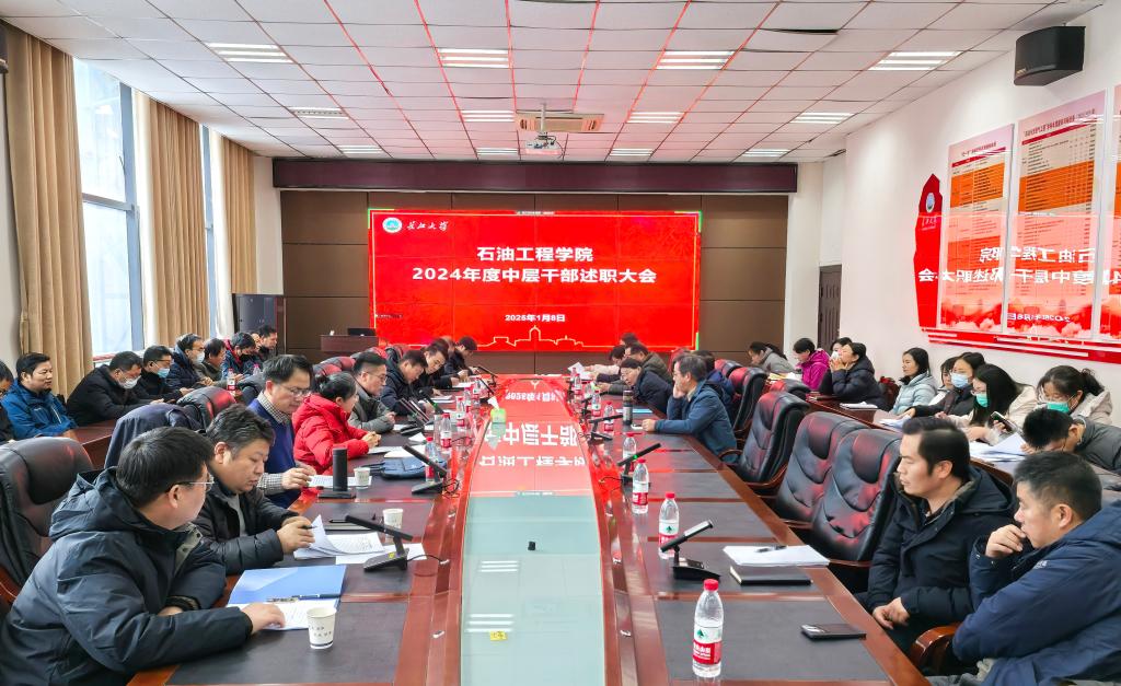 2025年1月8日下午,太阳成集团tyc234cc主页在石油科技大楼B113会议室召开2024年度工作总结暨中层干部述职大会。公司中层干部考核第四组副组长、武汉校区党工委书记崔青山出席指导,公司班子成员和全体教职工参加会议。