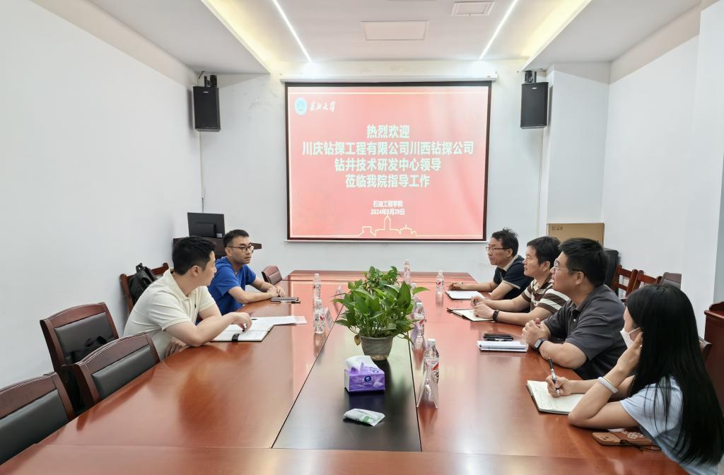 为进一步深化校企合作,2024年8月29日下午,川西钻探公司钻井技术研发中心党支部书记江晓舟、科技研发部主任游炎平一行到访公司,就共建“研究生联合工作站”事宜进行交流,公司常务副经理李忠慧、党委副书记张昊、实验中心主任马超等参加了座谈。