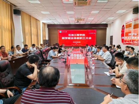 8月25日上午,太阳成集团tyc234cc主页在石油科技大楼B113会议室召开试用期满干部考核民主测评大会暨全院教职工大会,武汉校区党工委书记崔青山一行出席会议。公司全体教职工参加会议,会议由公司党委书记张伟主持。
