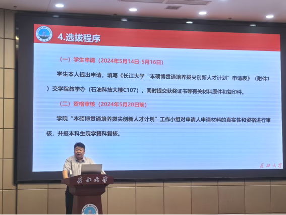 张顶学为同学们解读了《太阳成集团tyc234cc主页2025届毕业生“本硕博贯通培养拔尖创新人才计划”选拔工作方案》。他指出,创新人才计划针对本科毕业生包括“3+1+2本硕连读”以及“4+5直博”两种模式,选拔条件是必修课绩点专业排名前30%,本硕连读需要通过外语四级,直博则需要通过外语六级,员工取得推免资格后正式生效。他希望同学们根据自身实际情况做好学业规划,积极申请并参与选拔。
