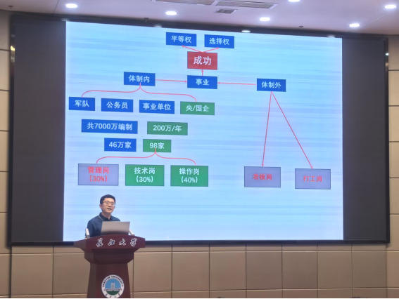 导师代表魏凯通过分享自己求学与工作经历,分析学历对职业发展的影响作用,为同学们提供了宝贵建议。他鼓励同学们努力学习、不断提升学历与专业水平,从而提高就业竞争力,赢得职业发展先机。