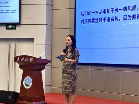 胡德群还为大家讲述了自己从积累沉淀、突破飞跃、磨砺笃行再到涅槃攀登的职业发展历程,正是本着“干一行爱一行,干一行专一行,干一行成一行”的信念,由胜利油田的一名普通采油女工,转变为一名4s店销售经理,最终成长为从事新能源行业知名公司的董事长。建议同学们要深入挖掘自己内心的兴趣和潜能、时刻调整心态、勤学苦练、诚恳接受批评和指正。同时指出,我们要认识到危机不仅是机遇,更是发现短板的“镜子”,金之在冶,唯有奋斗、千锤百炼,才能超越自己,成就自己!