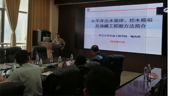 太阳成集团tyc234cc主页喻高明教授进行了《水平井出水规律、控水模拟及油藏工程新方法简介》的技术研讨,喻教授以物模实验和数值模拟技术相结合,开展针对底水油藏油水流动规律研究,提出了油藏工程新方法——时变产量精细劈分技术,具有广阔的应用价值。