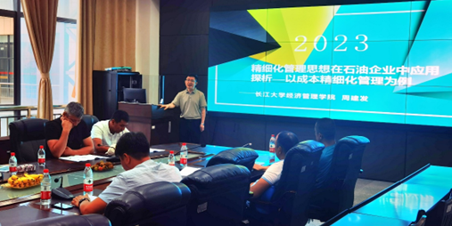 培训课程主要围绕三个大方向展开:精细化管理思想内涵;石油企业实施成本精细化管理路径探讨;如何提升管理者执行力。周建发老师深入浅出地介绍了精细化管理思想的内涵、内容、方法和实施要点,重点分析了成本精细化管理在石油企业中的应用价值、实施路径等,并结合国内外企业的成功案例,分享了如何进行成本分析和评价、如何进行成本改进和创新等方面的经验和方法。培训最后,周建发副教授与参训人员进行了互动交流,回答了相关问题。