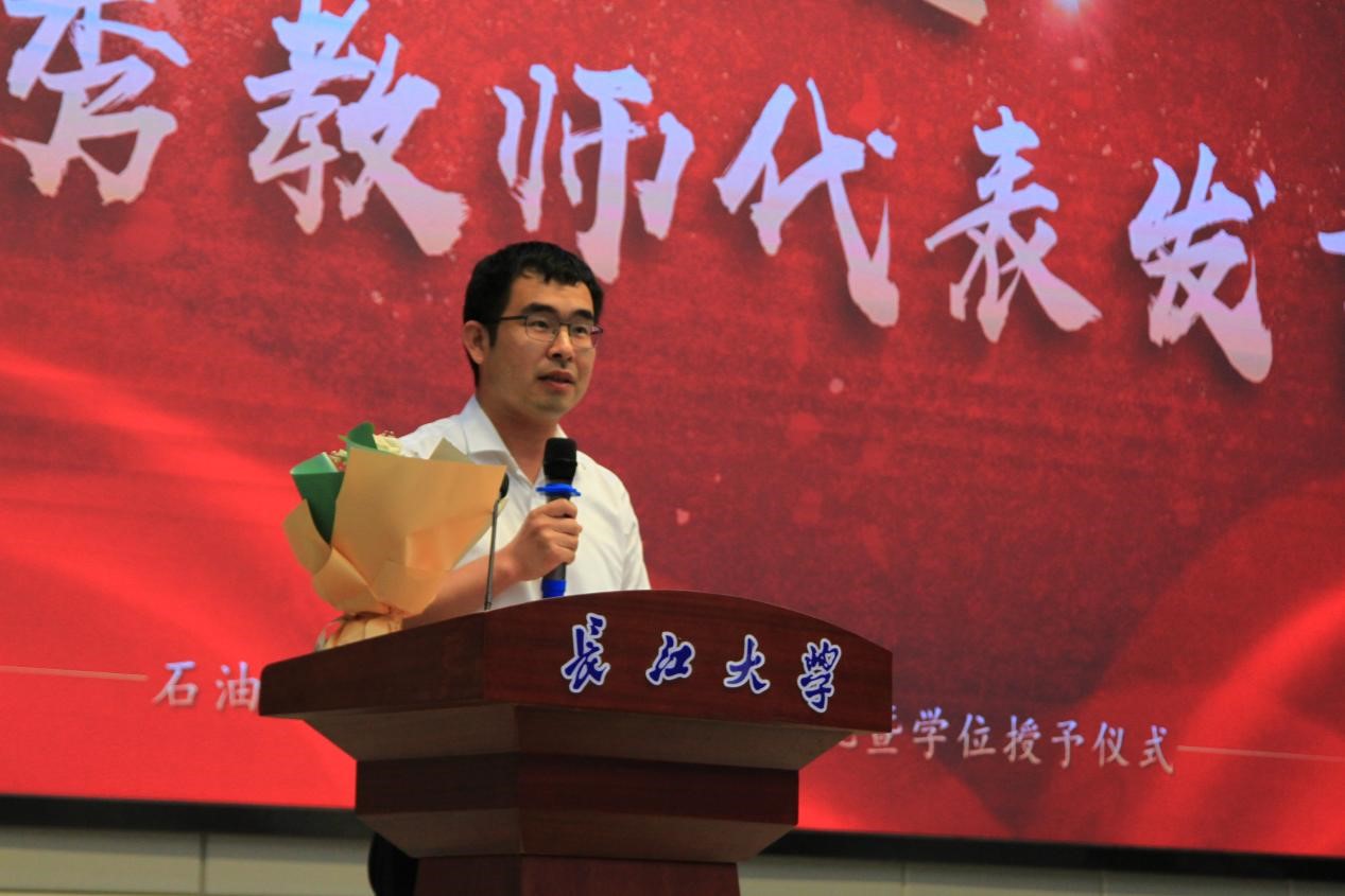 仪式第六项,教师代表张菲菲教授发言。“没有比脚更长的路,没有比人更高的山。希望你们记得常回家看看,看看校园的变化,听听老师的唠叨,谈谈自己的感受。老师将一直守望在这里,祝福着你们,期待着你们佳音回报。”