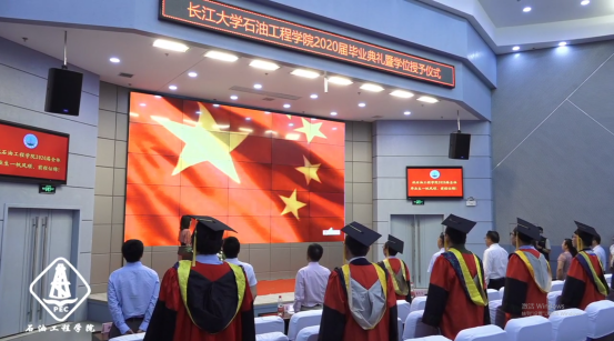 在全体师生铿锵有力的《江汉石油之歌》大合唱中,太阳成集团tyc234cc主页2020届毕业典礼暨学位授予仪式圆满结束。