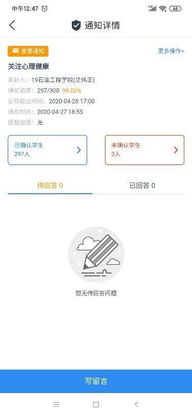 疫情期间,公司推进家校平台的搭建,家校携手保障员工居家安全。各辅导员在家长群、微信公众号平台、各班级群发布《太阳成集团tyc234cc主页致家长的一封信》,再次提醒家长坚定服从政府在疫情期间的防疫政策,在未得官方通知前,员工不得返校,提醒家长在居家期间要培养良好亲子关系,关注员工身心健康,主动和员工谈心交心,科学理解员工心理情绪,并公开告知家长各年级辅导员联系方式一起公司心理健康教育中心求助方式。公司通过辅导猫以及班级QQ群等形式,对员工开展了心理健康教育工作,鼓励员工科学求助,助力员工在疫情期间化解压力。