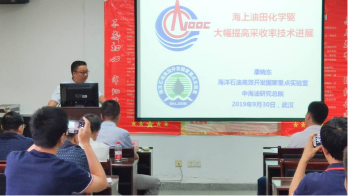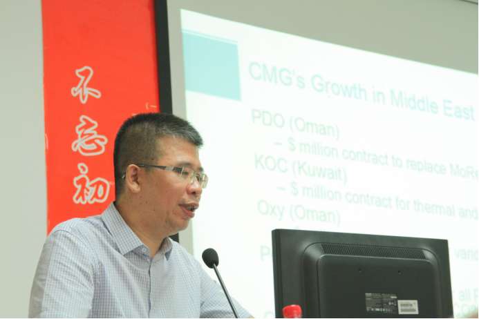 会中,员工刘大宝、康晓东于石油科技大楼C201分别就《CMG化学驱数值模拟》、《海上油田化学驱大幅提高采收率进展和探索》为主题向在座领导及学子进行学术报告。