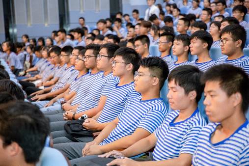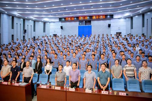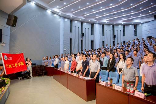 会上,公司教师和全体新生面对院旗,高唱院歌《江汉石油之歌》。全场响起激动人心的歌词:不畏艰苦,何惧风霜,愿献出青春热血,为祖国繁荣富强……