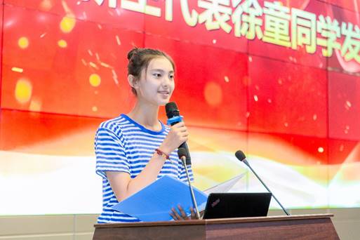 储运21901班徐童同学代表全体新生发言。她说:“青春是一道算法,立志勤勉是加法,心存懒惰是减法,奋力拼搏是乘法,虚晃度日是除法。选对了算法,人生就是几何系数增长。”对于大学四年的规划,她立志要扎实学问、勤勉学习、不断奋斗、报效祖国。