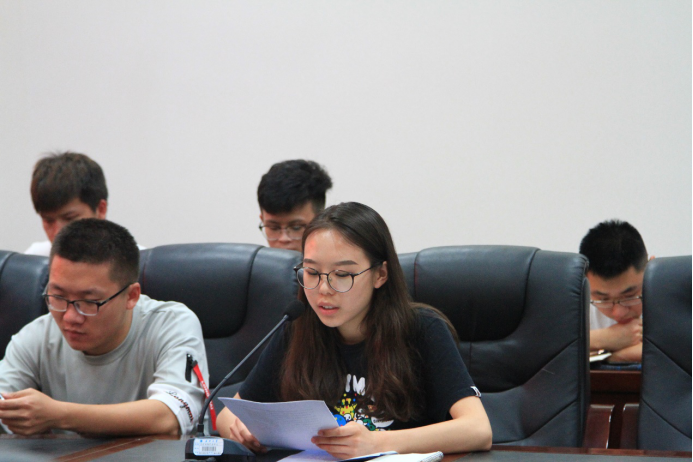 会议在高亢激昂的国歌声中拉开帷幕。会议进行第一项,员工党员代表方含之发言,方含之同志为我们分享了她四年的思想进步、学业及综合能力提升的过程,并对未来的学业和工作进行了展望。随后员工党支部书记沈伟正老师对公司毕业生党组织关系转接事宜进行了强调和说明,他严肃地告诉同学们:“组织关系转接关系到我们每一位党员自己的切身利益,希望大家能积极配合党支部的工作,尽早、尽快、准确地完成党组织关系转接工作。”并在会议结束后与对党组织关系转接问题仍有困惑的同学进一步交流,解释说明。