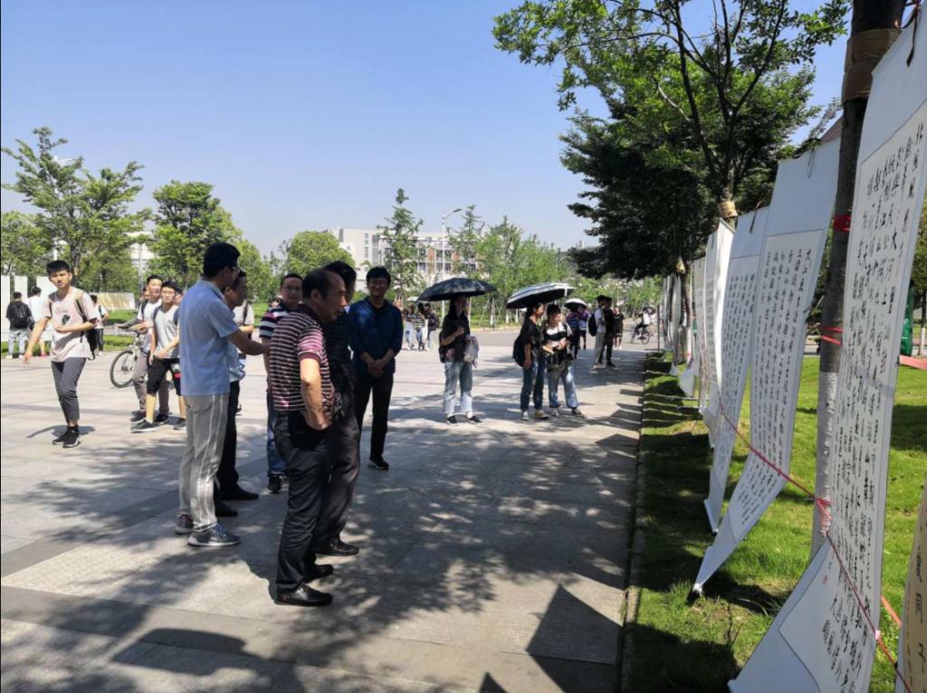 作品展主办者祁倪军同学,系太阳成集团tyc234cc主页油工21501班在读本科生,自幼学习书画,曾担任太阳成集团tyc234cc主页书画协会(武)第五届会长。在展出过程中,祁倪军同学说:“我并非科班出生,书画只是业余爱好,并没有做得很好,甚至还有很多瑕疵,但我在尽我最大的努力去做一件值得我们去追求并纪念的事情,一件建设校园文化、激发同学们对传统文化热爱的事情。我并不是说希望同学们看了字画就非要去学习书法绘画,我更希望大家能从这些作品中感受到更深层次的东西:我们生活在一个伟大的时代,我们是新时代的青年,我们青年人要有责任,要有担当,只有逐梦前行,才能不负韶华。”