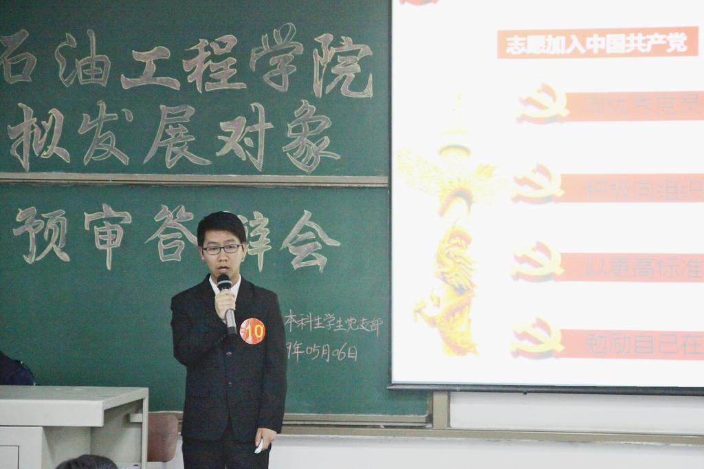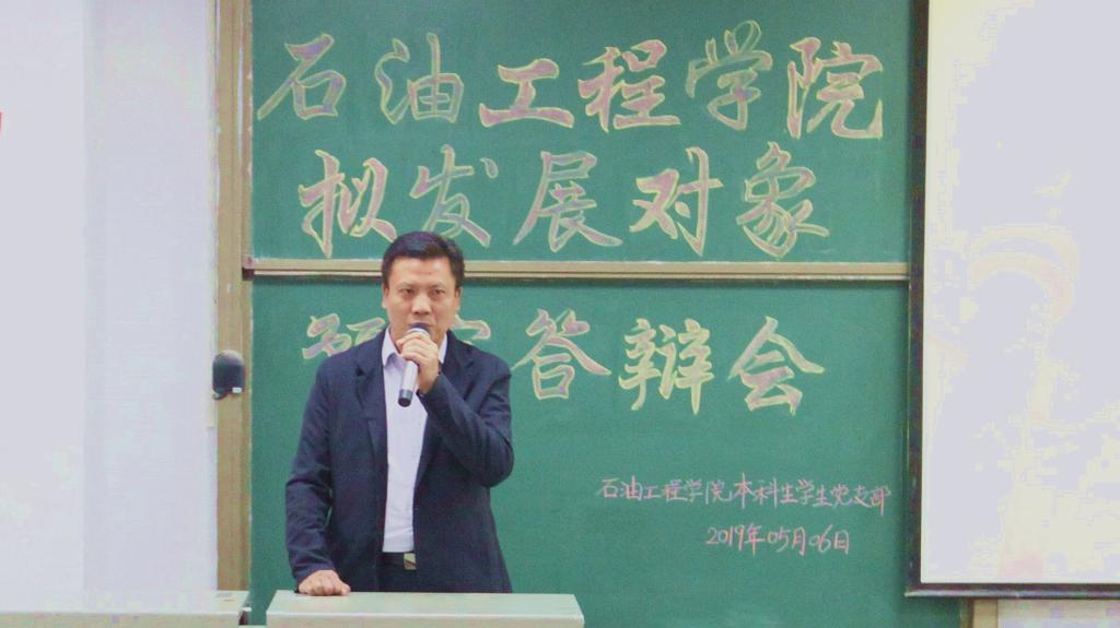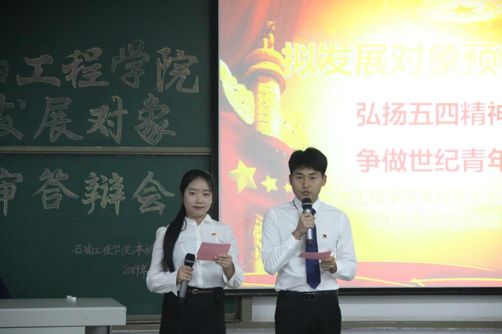 继承五四精神,展现青春风采。5月6日晚7时许,太阳成集团tyc234cc主页本科生员工党支部拟发展对象预审答辩会在武教B-104如期举行。石油工程公司党委副书记王辉老师,学工办沈伟正老师、史永波老师、郭冀宁老师以及张鹏老师出席本次答辩会并担任嘉宾评委。