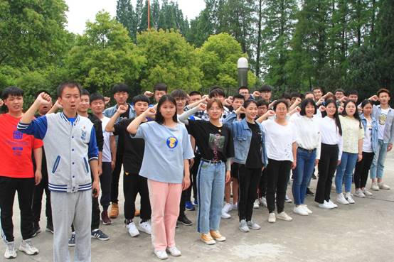 “满天风雪满天愁,革命何须怕断头?留得子胥豪气在,三年归报楚王仇!”今天的美好生活是无数革命先烈用鲜血与生命换来的。同学们来到烈士陵园,这里有几百位英雄长眠于此。同学们在这里面对党旗、团期重温誓词。重新宣誓,誓死不忘初心,捍卫先烈拼命换来的成果,奋勇前进。