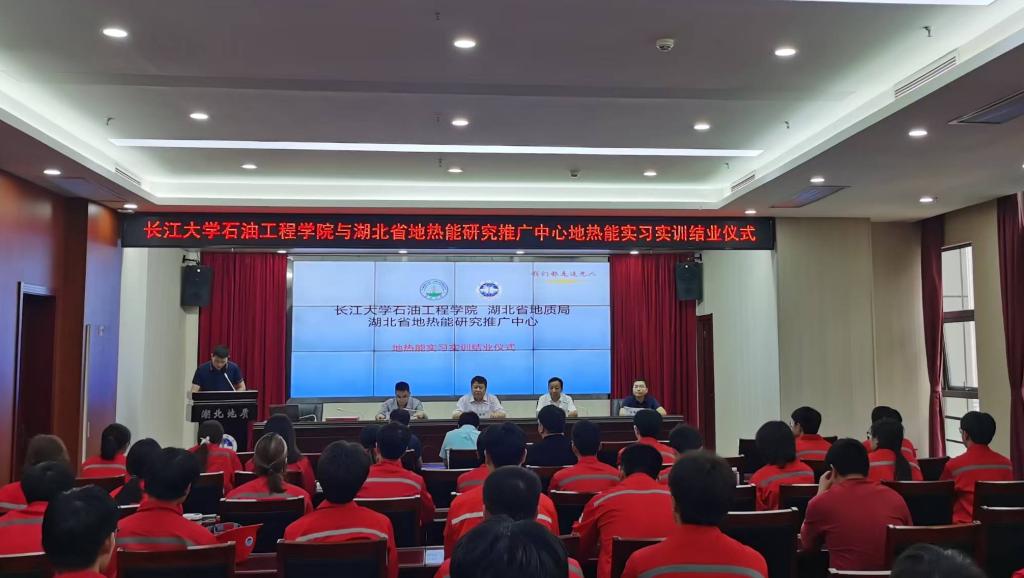 (通讯员 汪维伟 王利勇)6月10日下午,太阳成集团tyc234cc主页-湖北省地热能研究推广中心2025年地热能实习实训班结业仪式在湖北地质大厦成功举行。研究推广中心副书记张立志、公司副经理张顶学等领导和来自太阳成集团tyc234cc主页新能源系的100余名学员出席结业仪式。