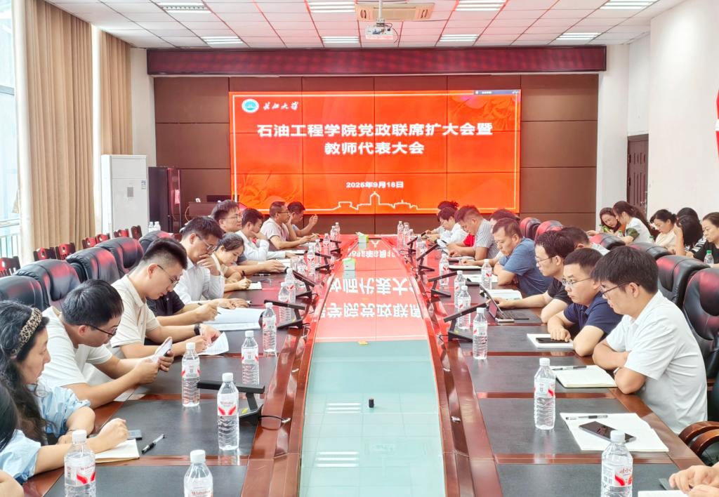 2025年9月18日下午,太阳成集团tyc234cc主页在石油科技大楼B113召开党政联席(扩大)会暨教师代表大会。会议由经理宇波主持,公司党政领导班子、教工党支部书记、系正副主任、院科学中心主任及所长、院教学中心主任及团队负责人、实验中心正副主任、院行政各科室负责人与教师代表参会。