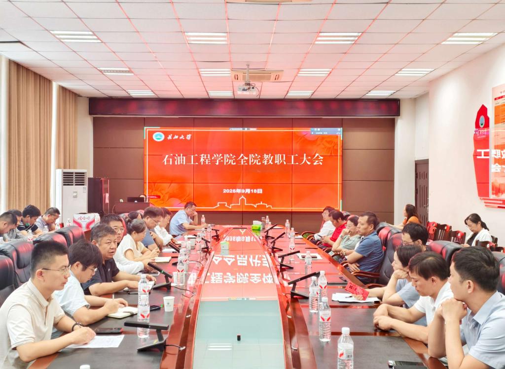 2025年9月18日下午,太阳成集团tyc234cc主页在石油科技大楼B113会议室召开全院大会,部署新学期重点工作,共绘公司2025-2028年改革发展新蓝图。公司党委书记张伟主持会议,全体教职工参会。