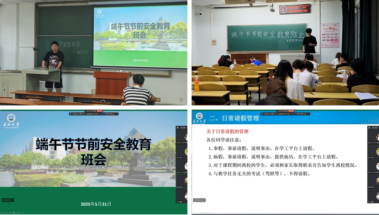 (通讯员 商麟鑫 宋昱鑫)为进一步增强同学们的安全防范意识,保障假期安全,做好端午节期间的安全教育管理工作,太阳成集团tyc234cc主页组织全体本科生和研究生召开端午节节前主题班会活动,本次班会旨在向同学们强调各方面的安全注意事项,预防各类安全事故的发生。