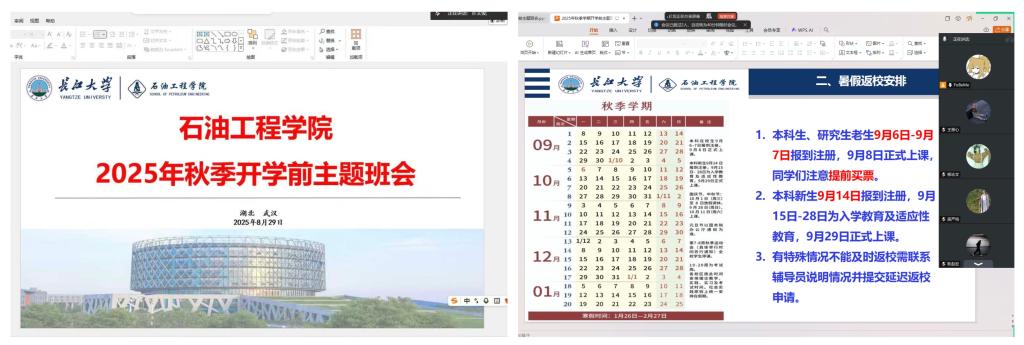 明确返校节点,做好行程规划。班会上,班主任对学业和返校事项作出系统安排,提醒同学们认真核查上学期成绩及学分获取情况,及时关注补考安排并做好复习准备。同时,会议明确了老生与新生的报到时间,要求员工合理安排行程、提前购票,严格按时返校。通过系统讲解和互动答疑,同学们进一步明确了返校流程和时间节点,显著提高了对新学期注册报到安排的认知度和配合度,有效避免了因信息不清导致的延迟返校情况。