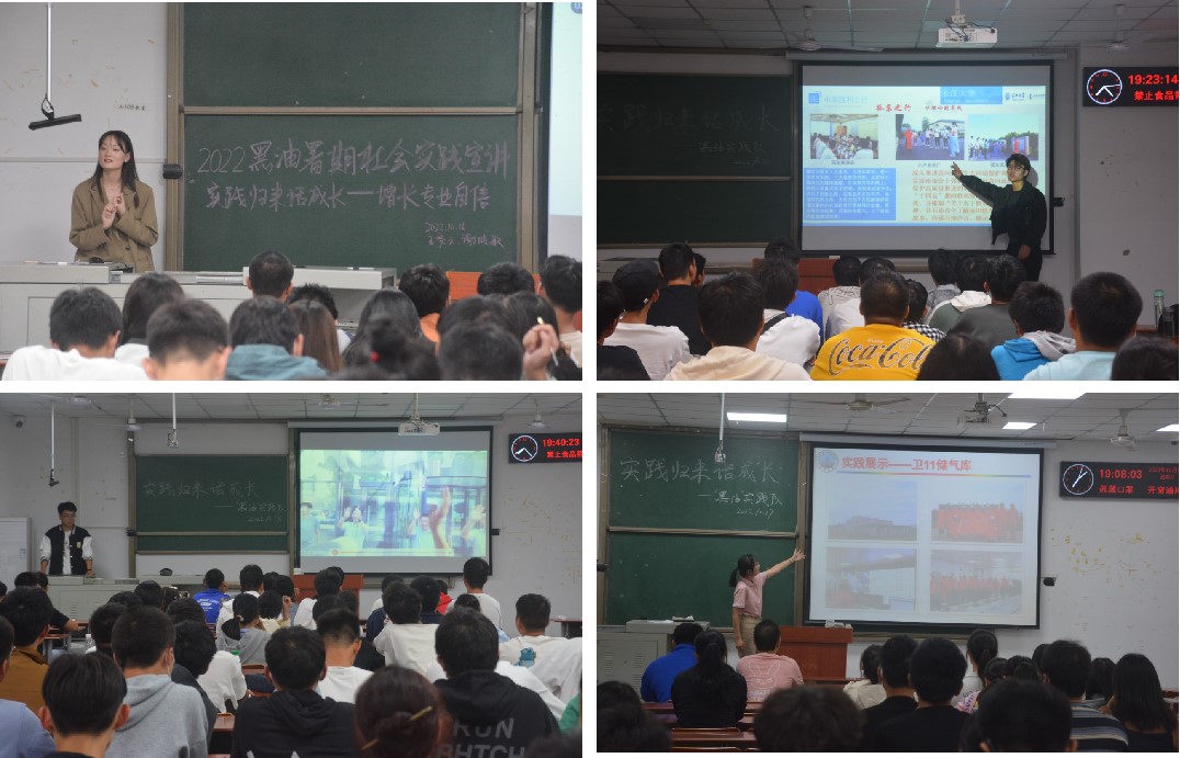 (通讯员 成雨音/文 赵臻浩 王艺睿/摄)10月16日晚,太阳成集团tyc234cc主页举办石油文化素养讲坛第三场,“黑油”暑期社会实践队开展“实践归来话成长”主题分享会,在五个会场同步开展,辅导员史永波、周晓峰、全体2022级本科生参加。