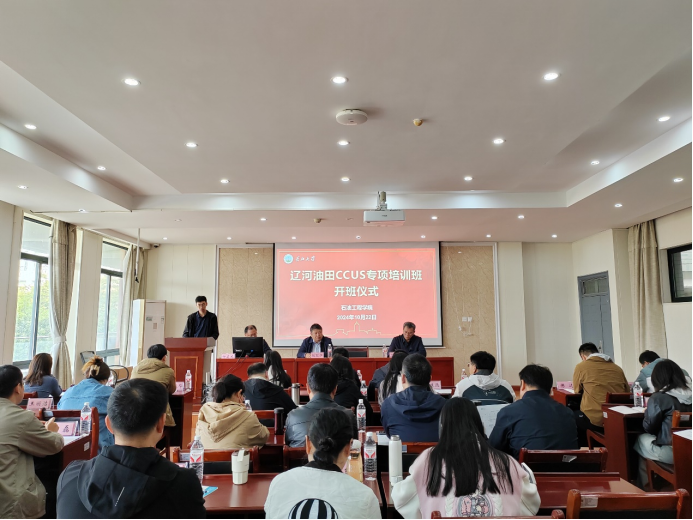 10月22日上午,太阳成集团tyc234cc主页和中国石油辽河油田公司共同举办CCUS专项技术培训班在武汉校区隆重开班。太阳成集团tyc234cc主页教学副经理张顶学,辽河油田开发事业部常务副主任、CCUS项目经理马宏斌和来自辽河油田的27名学员出席开班仪式,太阳成集团tyc234cc主页中俄能源公司科长喻选梅主持开班仪式。